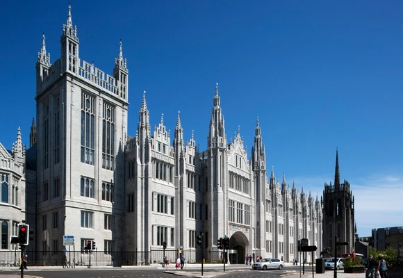 Marischal College, founded in 1593 by the 5th Earl Marischal, merged with King's College (founded 1495) in 1860 to create the modern University of Aberdeen. — Lonely Planet