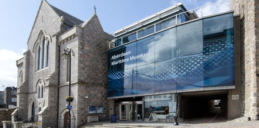 Overlooking the nautical bustle of Aberdeen harbour is the Maritime Museum, centred on a three-storey replica of a North Sea oil production platform. — Lonely Planet