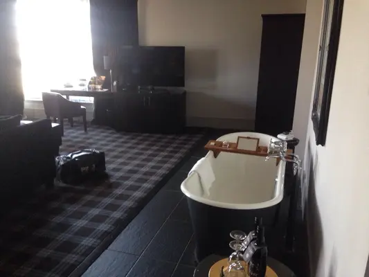 "Think deep-burgundy-and-purple-velvet throws, softly colored plaids, high-thread-count linens, fluffy robes, stand-alone tubs, rain showers, and luxury toiletries." Full review