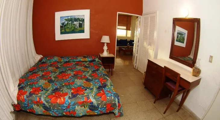 This very hospitable, family-run hotel is extremely clean and well equipped, with 1950s-style three-bed rooms with kitchens, balconies and a/c in lovely gardens overlooking La Quebrada. — Rough Guide
