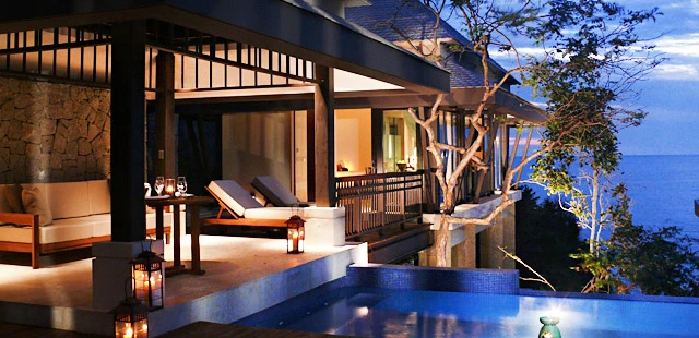 “Well away from the crowds, the discos, and the oft-crowded beaches are Banyan Tree's romantic luxury villas, each with its own small infinity pool overlooking the bay.”