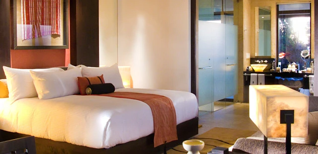 "Asian-inspired rooms are accented with Mexican artisan details (framed handwoven textiles from Oaxaca; honey-colored onyx lamps)." Full review