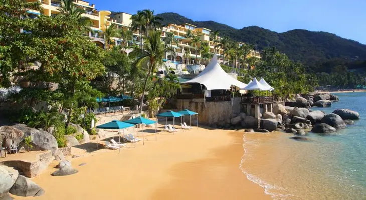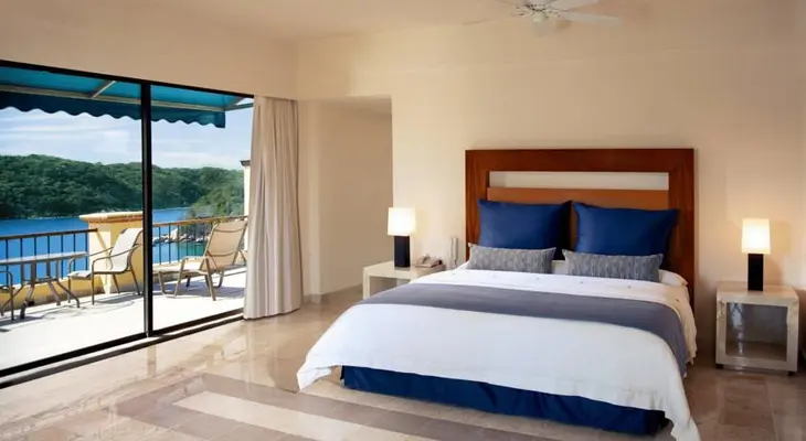 "This secluded resort sits directly above its own small, rocky stretch of Playa Pichilingue... Each of the 157 luxuriously appointed rooms has a terrace or balcony looking out over the bay." Full review
