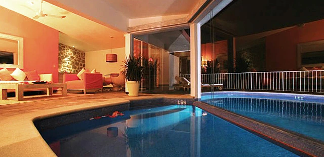 “Romantic hideaway set above Acapulco Bay with an open-air restaurant, private pools and beach shuttle service.”