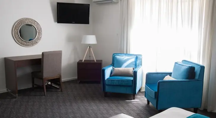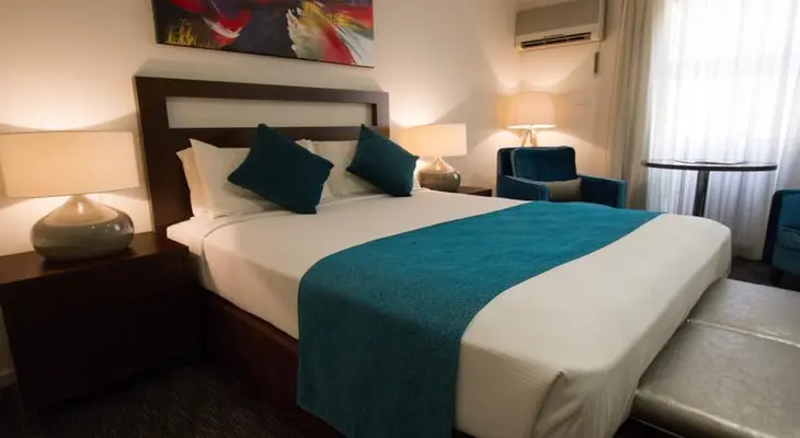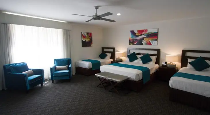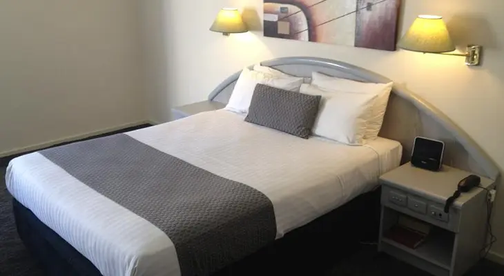 “Three-storey brick motel monster just beyond the parklands at the eastern end of town, with good facilities and late-'90s decor (you're not paying for style here).”