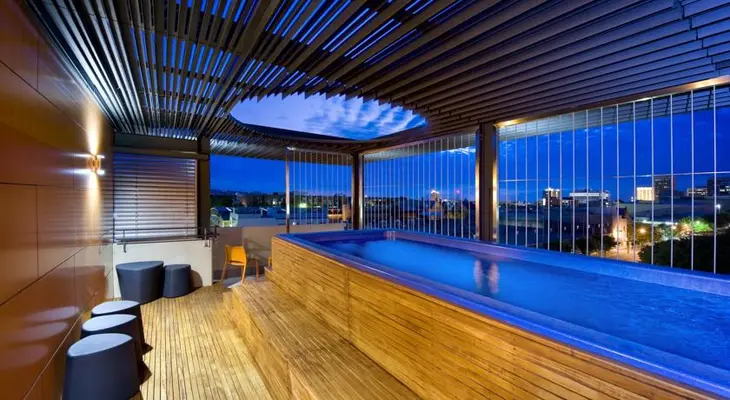 "Funky accommodation with a rooftop terrace, in-house spa, designer furniture and exhibitions by emerging local artists."