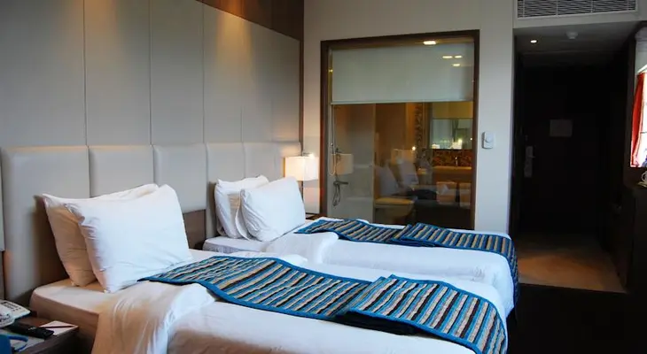 “Standard (formerly deluxe) rooms in this very welcoming hotel are decked out in elegant dark-wood furniture and stylish decorative tiling.”