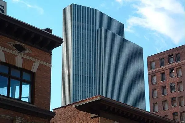 An elevator whisks you up 589 feet to the 42nd-floor observation deck of this building, the tallest structure in the state outside New York City. — Fodor's