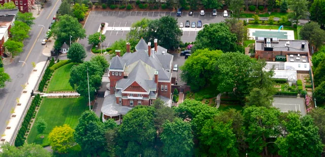 "Wraparound porches, a balconied gable, and turrets provide evidence of the 1856 building's progression of architectural phases, from Italianate to Second Empire and finally Queen Anne. " Full review