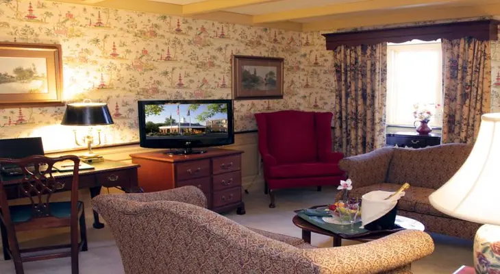 “Brick courtyards, hand-painted wooden signs, Early American furniture, and staff in 18th-century attire give this large hotel the air of a colonial village with modern conveniences.”