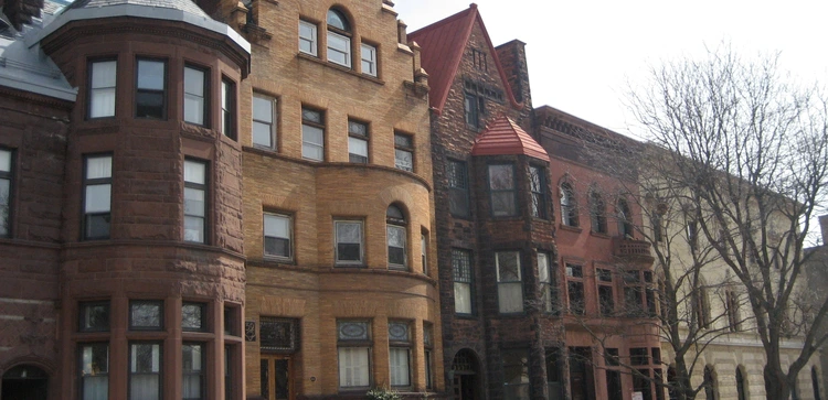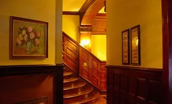 “Inside the Morgan State House, a late-19th-century town house on Washington Park, rich cherry wainscoting complements high ceilings, hand-glazed walls, and fireplaces.”