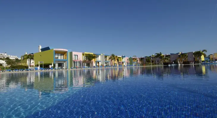 “The value-oriented Apartamentos Turisticos da Orada is a 220-apartment complex comprising multi-colored, low-rise blocks designed by renowned architect, Tomas Taveira.”