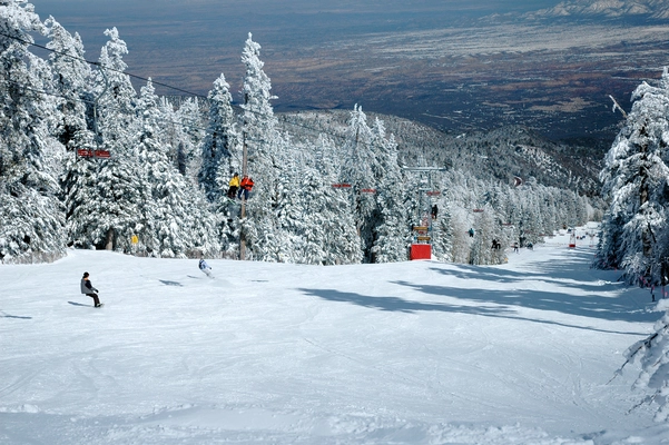 “Just west of the airport, this upscale, four-story hotel sits high on a bluff, affording nice views of Downtown and the western mesa as well as the Sandia Mountains.”