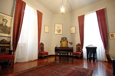 Half of it is given over to a re-creation of his home, with a period-piece brass bed and a case of reputedly genuine Christian icons. — Fodor's
