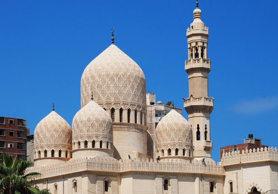 "Late 17th-century builders managed to incorporate bits of ancient Alexandria in the mosque’s structure, reusing two classical columns to support the minaret." Full review