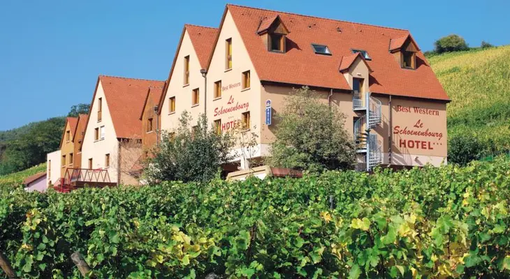 “The three-pearl Best Western Hotel le Schoenenbourg offers reliable comfort, a two-minute walk from Riquewihr's medieval town.”
