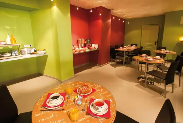“Bold color splashes and an art-decked interior give the place an art-rustic appeal.”