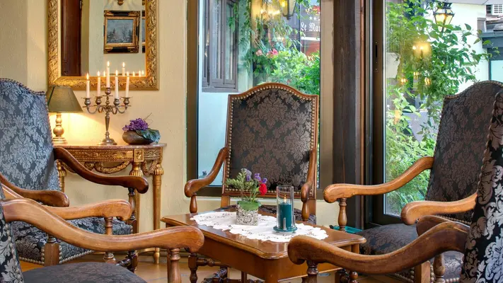 "This romantic, riverside inn is made up of a series of Renaissance houses lavished with glossy rafters, rich brocades, four-poster beds, Jacuzzis, and other extravagant details." Full review