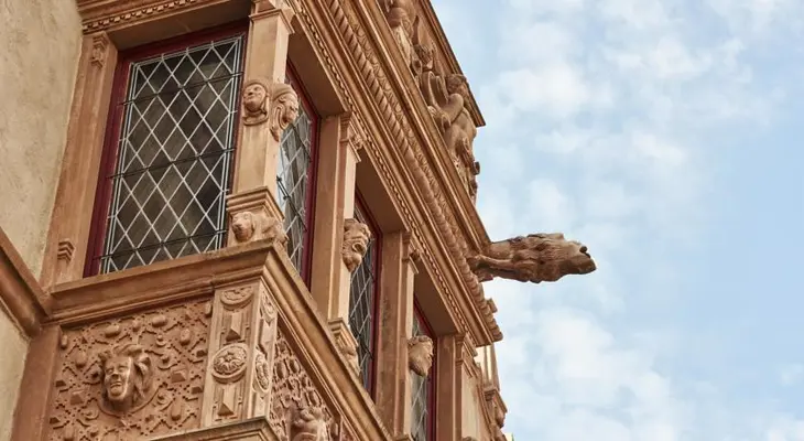 "This large house, a fine example of Renaissance architecture built in 1609 by a wealthy merchant, is aptly named given its decor of no fewer than 106 sculpted heads on its façade." Full review