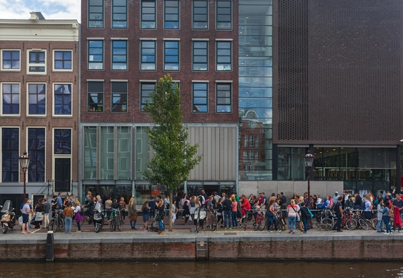 “Located in the west end of Amsterdam’s canal belt, the Anne Frank House is open for hour-long tours.”