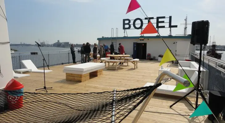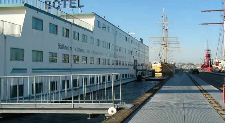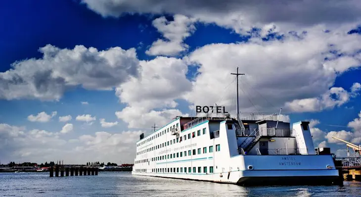 “Where better to experience a city on the water than on a boat-hotel moored permanently to a dock on the IJ waterway northwest of Centraal Station?”