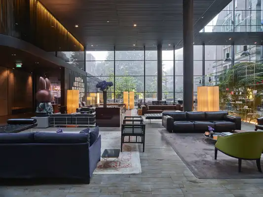 "An impressive early 20th-century bank turned music school is a visual feast, with a glass-roofed, tree-filled courtyard lobby and dramatically modern guest rooms." Full review