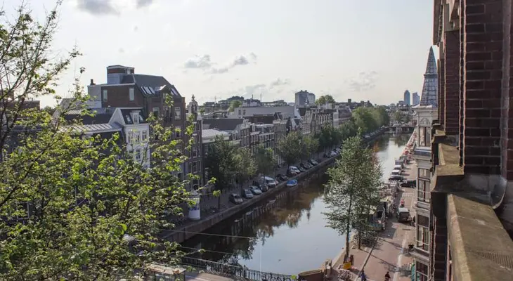 "In an 18th-century warehouse building near Leidseplein, rooms are plain but smart; the glamorous penthouse has a wall made of glass for unsurpassed views over the city rooftops." Full review