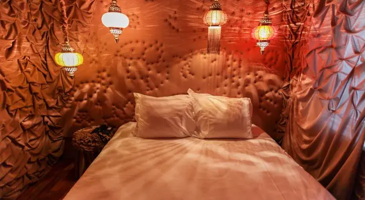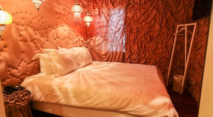 “Students from the Amsterdam Fashion Institute designed the rooms here, and each is wildly different, from one in an all-white palette to another whose walls are draped in exotic fabrics.”