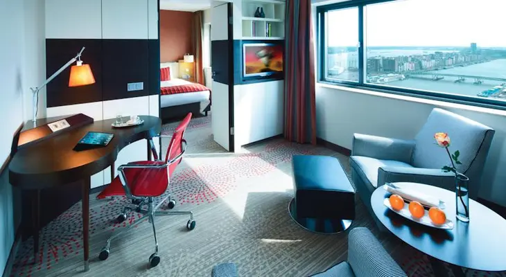 "Modern chain hotel... the rooms have panoramic views. Concert hall, jazz club and congress centre next door."