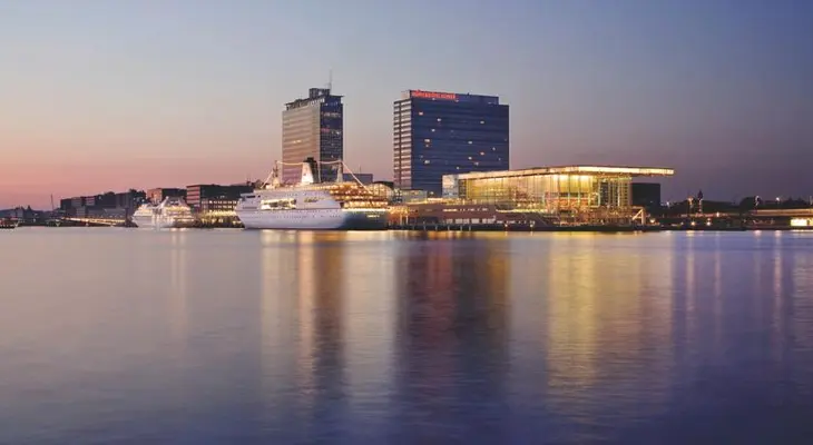 “One tram stop from Amsterdam's Centraal Station, this hotel exchanges the hustle and bustle of the center for stupendous views over the river, the harbor and city. ”