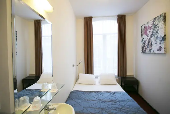 “The 34-room Quentin Arrive Hotel is a budget property located at the top of Canal Ring, a seven-minute walk to Amsterdam's central station and a 12-minute walk to Dam Square.”