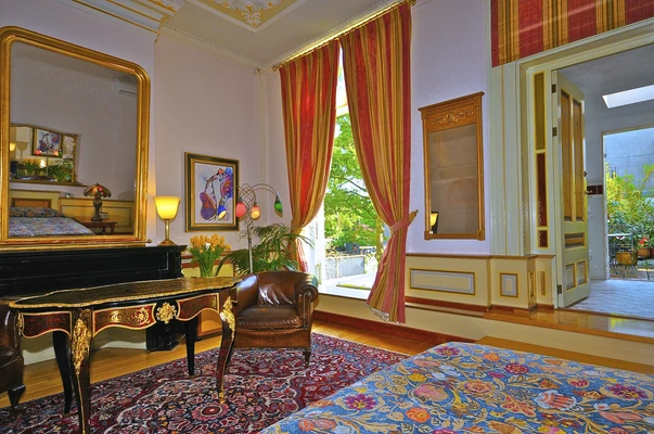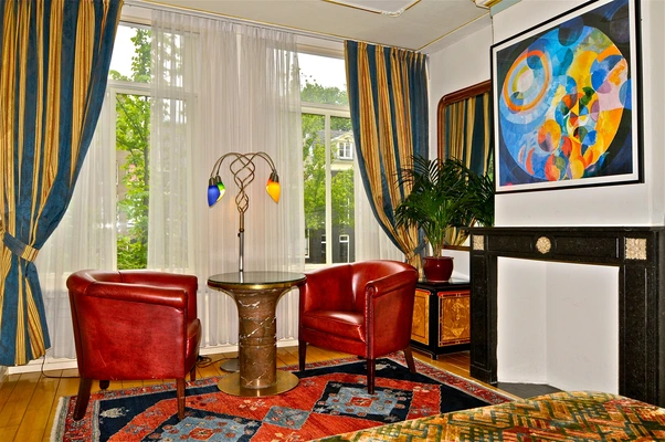 "These uniquely styled guest rooms, meticulously decorated with dark woods, Oriental rugs, and handcrafted Art Deco furnishings, overlook one of Amsterdam's famous sights." Full review