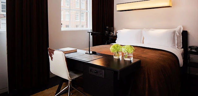 "The book-lined lobby lounge, outfitted with generous leather seats, cowhide poufs, and a gas fireplace, is a cozy spot...many of the rooms feature high ceilings and equally tall windows" Full review