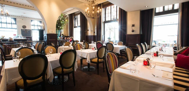 "The traditional dark, dusky decor and starched pink linens add elegance, while the menu leans heavily to fish from Dutch waters and, in season, to game specialties such as hare and venison." Full review