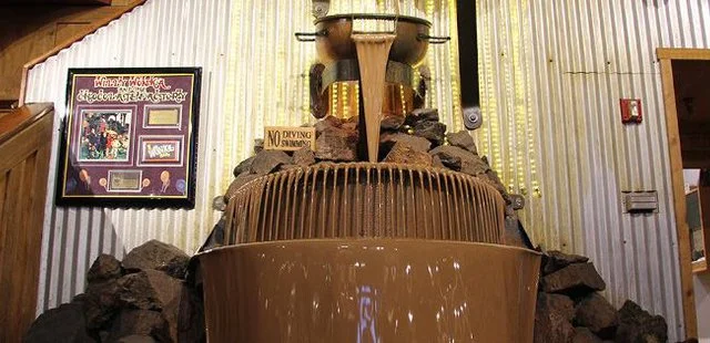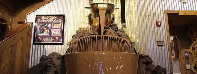 “Home to the world’s largest chocolate waterfall as well as a chocolate factory, theater and gift shop with Alaskan gift options.”