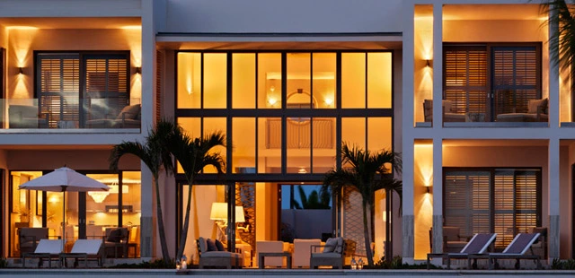 "Situated between the beaches of Barnes and Meads bays, this "jaw-dropping, Mediterranean-style modern resort" has large glass windows with "remarkable views in all directions"." Full review