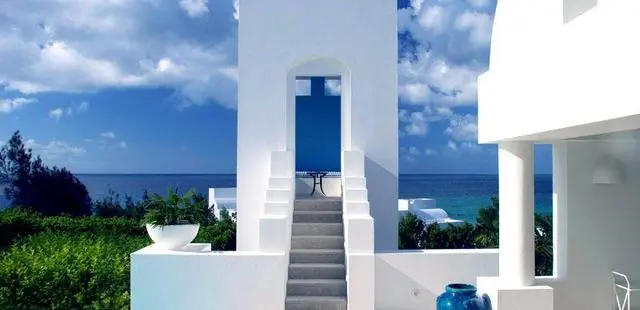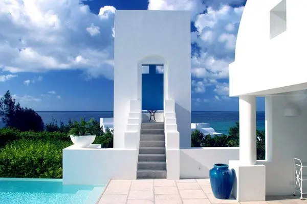 “Named after the Greek word for "sanctuary," this trio of grand Mykonos-style villas perched on a cliff seventy feet above the ocean, represents the ne plus ultra of lodging luxury.”
