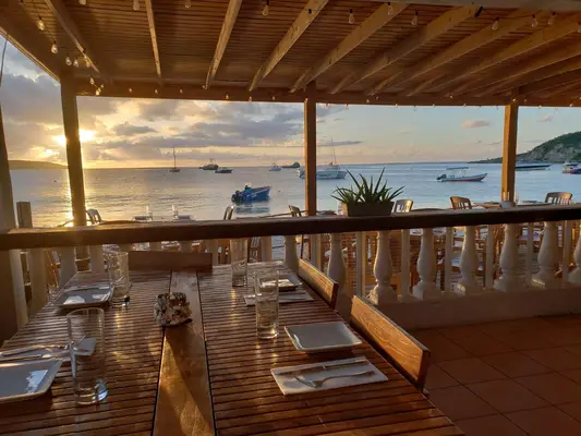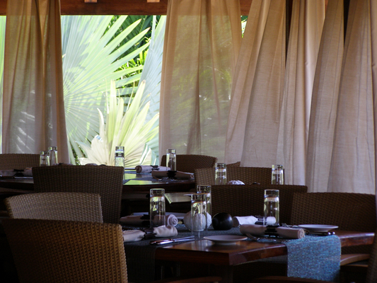 Continues to rock the beach, serving delicious, unfussy food with real savoir-faire in a candlelit room with tile floors and teal shutters thrown open to the salt breezes. — Frommer's