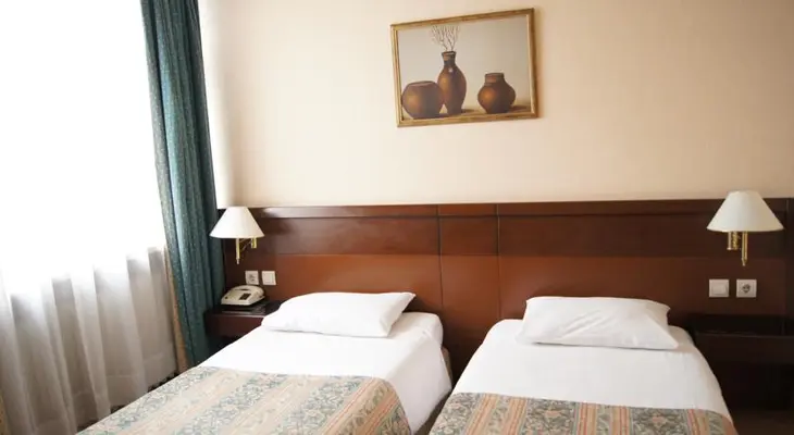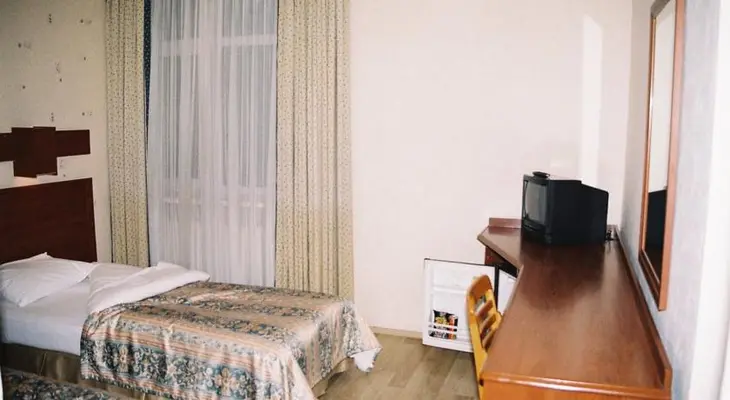 “Nicely decorated with bright duvets and curtains, and equipped with heating and a/c, minibar and TV. There’s a simple restaurant/bar in the lobby and it even has a garden out back – a rare find.”