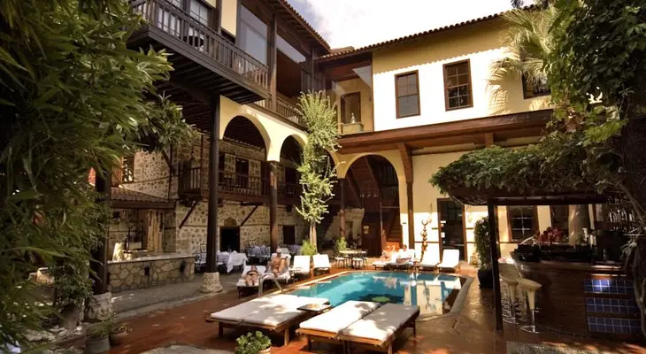 “Lush conversion of an Ottoman mansion, set around a cramped garden with a tiny pool.”