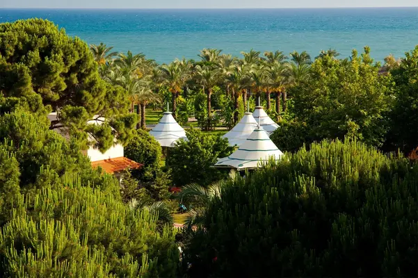 “The 429-room Green Palace is an upscale beachfront resort offering good value in a quiet area a half-hour drive from central Antalya.”