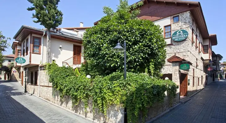 “Housed in a historic building, the upper-middle-range Mediterra Art Hotel sits in the historical center of Antalya.”