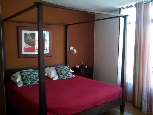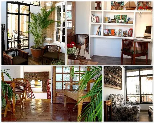“A modern twist on colonial decor: there are polished wood floors, beautiful wooden furniture...colourful fabrics and light flooding in from skylights and big windows.”