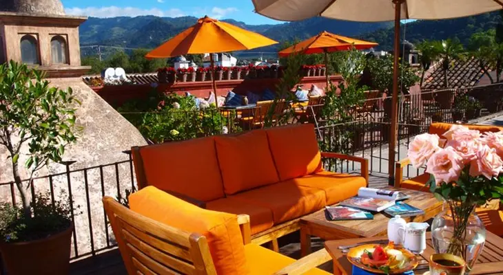 "Stylish inn near the main plaza of the beautifully restored Spanish colonial town of Antigua, a one-hour drive west of Guatemala City in the cool, lush highlands." Full review