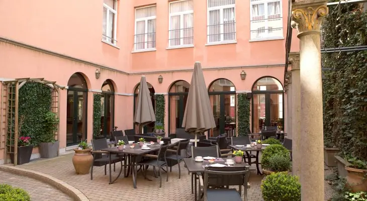 "The Rubens occupies a stately building near the Grand Place, in which some of the guestrooms have a terrace overlooking the garden."