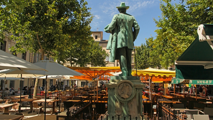 " Beneath the plane trees you can see a statue of Frédéric Mistral and, just behind, the two Corinthian columns on the façade of the mythical Hotel Nord Pinus, vestiges of the façade of a 2C temple." Full review