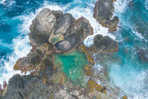 The surrounding rocks break the surf so – with waves crashing all around – you can take a peaceful, cooling dip. — Lonely Planet
