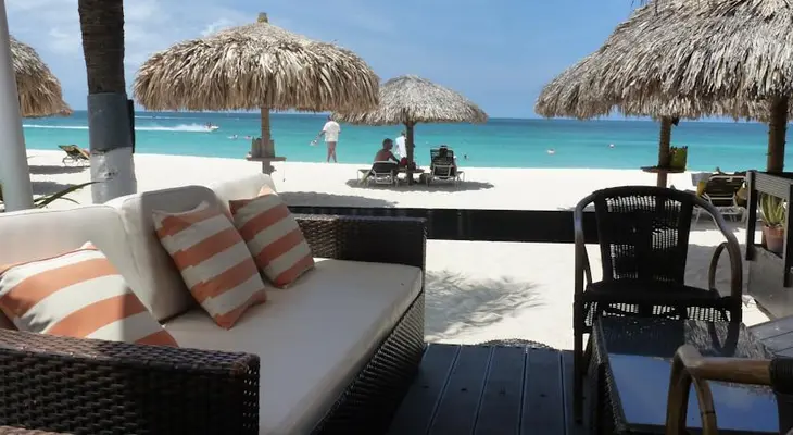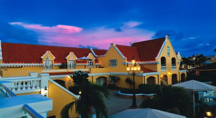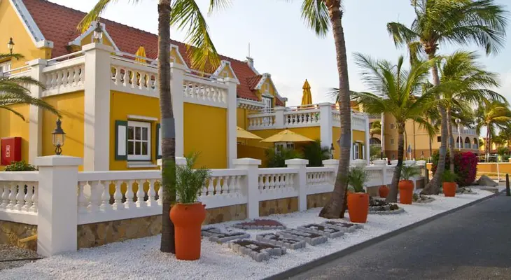 "At the north end of blindingly white Eagle Beach, this 72-unit family-run resort mimics a Dutch village, without the frosty weather." Full review