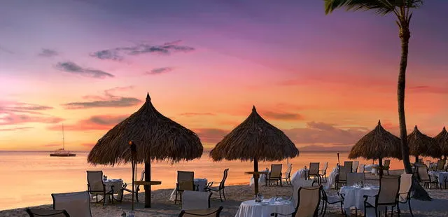 “Grab a table right on the beach, kick off your shoes, and sink your toes into the powdery sand of Aurba's famed Palm Beach.”
