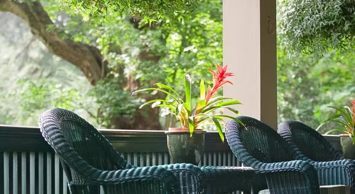 “Guests are pampered at this Arts & Crafts–style B&B in the Montford section, where most rooms have whirlpool baths, big-screen TVs, and fireplaces.”